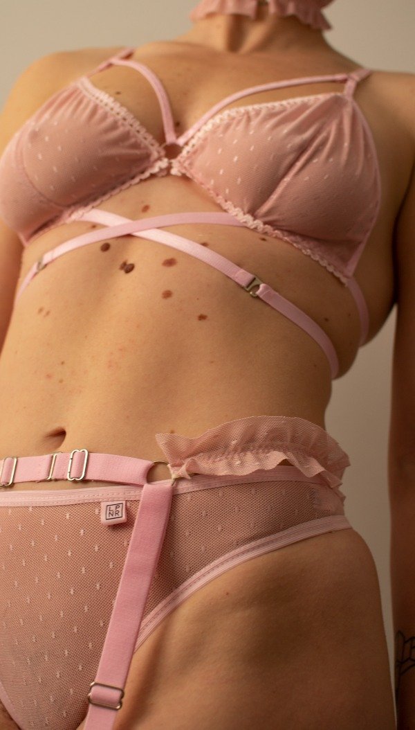 Conjunto de microtul. El corpiño y las ligas son totalmente regulables. No olvides dejar en Notas el talle de tu corpiño y bombacha. Podes consultar por otros modelos de bombacha