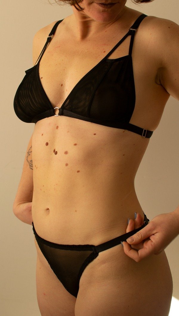 Combina muy bien con la bombacha colales de microtul y el arnés diagonal.